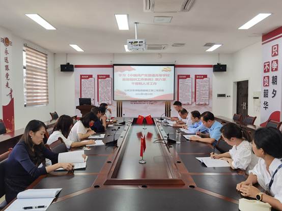 会上,学院党委委员、正处级组织员胡雪松同志带领大家一起学习了银龄微党课《黄志坚:新时代青年怎样走好成才之路》并分享了学习体会。随后,支部书记张孝刚同志领学了《中国共产党章程》(第六章 党的干部)、《中国共产党普通高等学校基层组织工作条例》(第六章 干部和人才工作)、《中国共产党支部工作条例》(第三章 基本任务)及《习近平生态文明思想学习纲要》部分内容。组织委员伍周玲同志领学了《信访工作条例》。纪律检查委员谌小立同志领学了《中华人民共和国保守国家秘密法》《关于一体推进不敢腐不能腐不想腐的指导意见》(黔党发【2022】4号)和教育部曝光7起违反教师职业行为十项准则典型案例。统战委员胡颖同志领学了《中国共产党统一战线工作条例》(第十章 海外统一战线工作和任务工作)。