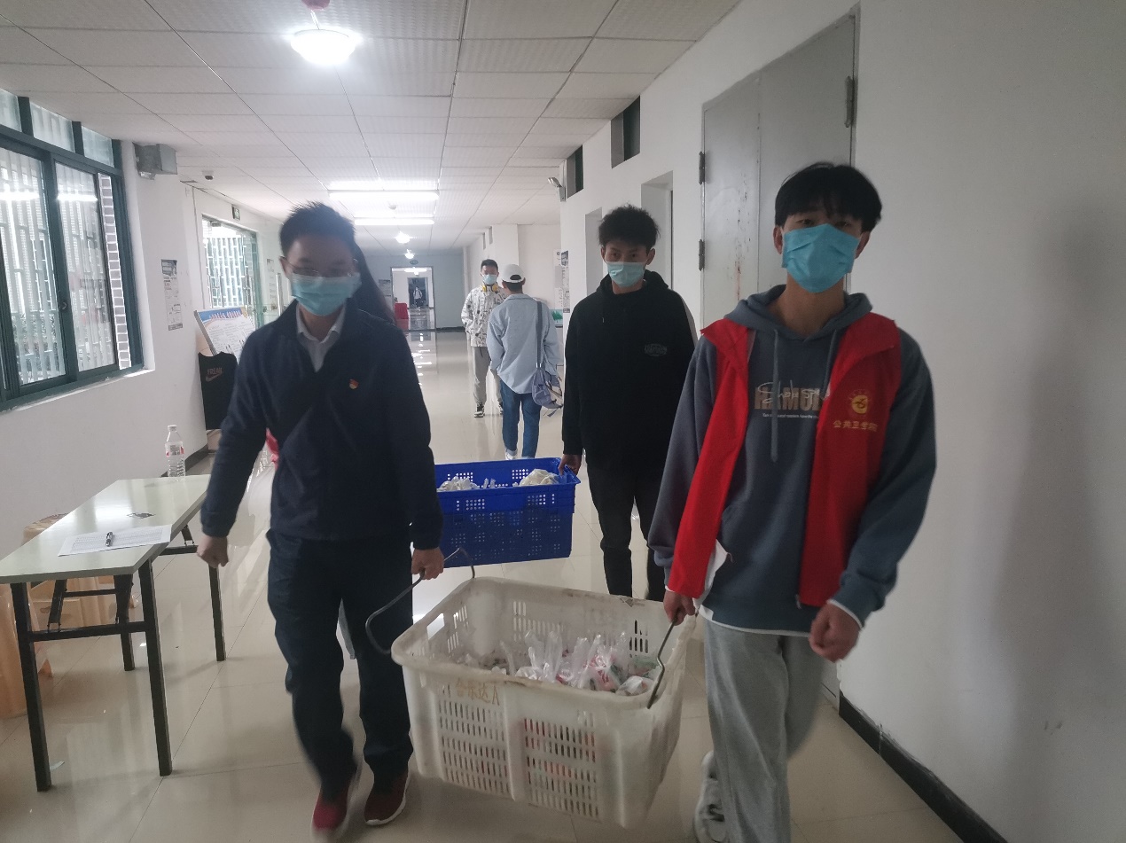 针对当前全国疫情持续多点散发,为切实做好抓牢疫情防控工作,筑牢校园疫情防线,守护师生员工健康安全,同学们积极配合做好临时留观工作。在学院党委的统一安排下,支部党员同志、教师及学生志愿者踊跃报名,积极参与为新同学送餐活动,为同学们排忧解难,保障同学们的日常所需,消除心中所虑。