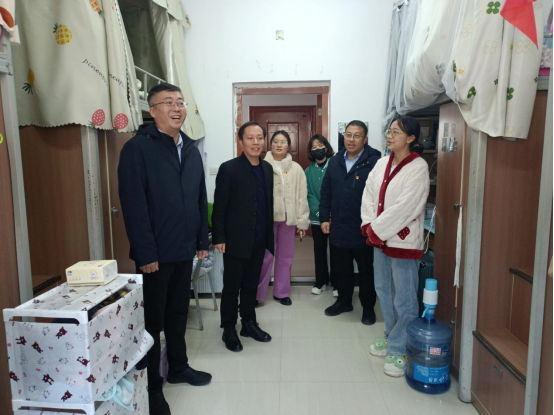 走访寝室时,郭宇亮部长与同学们亲切交流,详细了解大家的学习和生活情况,认真听取同学们对学校学生服务管理、活动安排、教学课程等方面的意见,并嘱咐大家近期昼夜温差大,早晚要注意添加衣服,好好复习,认真备考。