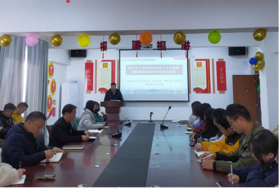 张在金书记主持会议时要求所有党员同志要认真学习贯彻党的二十大精神,结合实际,为学院和学校的高质量发展添砖加瓦。特别是临近期末,党员同学要发挥先锋模范作用,强化学风考风,守牢红线底线,认真复习备考,力争考出好成绩。