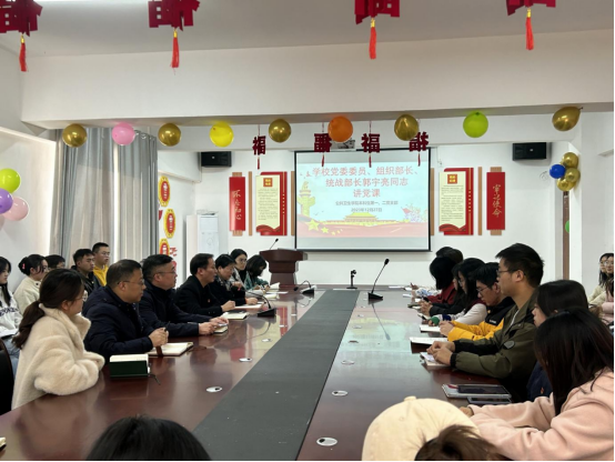 走访结束后,郭宇亮部长在心远社区党员活动室以“深入学习宣传贯彻党的二十大精神破解难题推动学校高质量发展”为题讲授专题党课。郭部长以学习宣传贯彻党的二十大精神为切入点,围绕新时代十年的伟大变革、中国式现代化的贵州实践、高质量发展的遵医实践、破解难题推动学校高质量发展及如何做新时代有为大学生五个方面作了详细讲解。郭部长最后强调,大学生要拒绝躺平,要立大志、明大德、成大才、担大任,要把学习贯彻习近平新时代中国特色社会主义思想不断引向深入,把握好其中的世界观和方法论,要求真务实,与遵医同向同行,为学校高质量发展贡献力量。