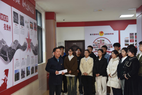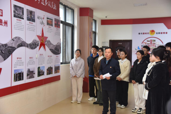 随后,在学院党建文化长廊,张在金以“风流人物——回溯红色印记 追忆峥嵘岁月”主题,详细讲授了中央红军在贵州的英勇历程,并强调青年一代要发愤图强、奋发有为,继续把革命前辈开创的伟大事业推向前进,在实现中华民族伟大复兴中国梦新的长征路上续写新的篇章、创造新的辉煌!