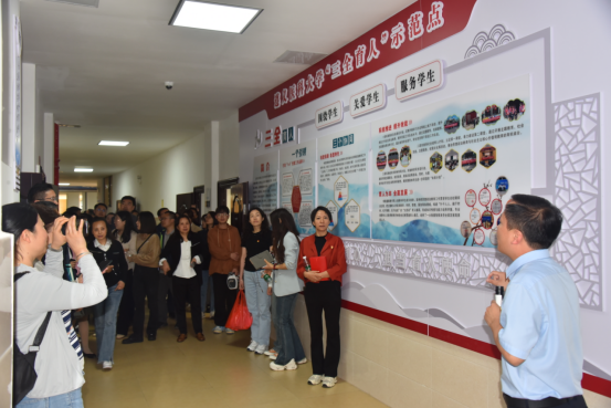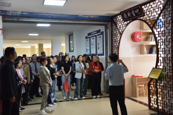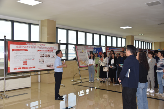 学院党委书记张在金围绕学院党建工作基本情况、院史文化墙建设、“三全育人”阵地建设和党建文化长廊建设四个方面并重点就“1+4”党建品牌打造、“遇时学堂”“遇时书吧”使用等方面作了介绍。期间,参加学校“五个一批”工程创建工作推进会的与会人员还相互交流分享了工作中的好经验和好做法。