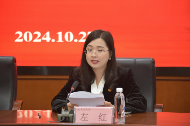 左红在致词中充分肯定了学院学生会在思想政治引领、服务同学、志愿服务、繁荣校园文化建设等方面取得的成绩,同时提出四点希望:一要始终把加强对同学的政治引领放在首位。组织同学深入学习贯彻习近平新时代中国特色社会主义思想,学习党史、新中国史、改革开放史、社会主义发展史、中华民族发展史,传承中华优秀传统文化、革命文化、社会主义先进文化,弘扬和践行社会主义核心价值观,大兴读书之风。二要深入开展“我为同学做实事”项目。主动对标同学实际需求,在服务同学学业进步、就业发展、社会融入、全面发展等方面持续发力,聚力打造具备学院特色、同学广泛认可的服务学生品牌项目。三要组织动员同学在中国式现代化建设中挺膺担当。坚持党旗所指就是团旗所向,把围绕中心服务大局作为工作主线,引导同学积极参与科技创新、乡村振兴、绿色发展、社会服务、卫国戎边等方面实践和工作,让青春在党和国家最需要的地方绽放绚丽光彩。要全面加强自身建设。深入推进全面从严治会,确保学生会改革“神形兼具”,切实塑造学生会组织对党忠诚、理想远大、根植同学、服务同学、清新阳光的形象,全面释放学生会活力。