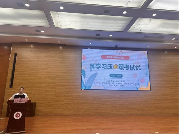 学院始终将学生心理健康教育作为育人工作的重要环节。本学期精心设计并成功举办了三期主题鲜明、针对性强的心理健康讲座。从第一期帮助低年级学生调整认知、适应大学生活,到第二期引导毕业年级缓解就业与学业压力,再到第三期面向全体学生应对考试焦虑,系列讲座立足学生成长需求,分阶段、分层次提供心理支持,进一步体现了学院“以生为本、呵护心灵、助力成长”的心理健康服务工作宗旨。三期讲座的顺利开展,不仅彰显了学院对学生心理健康的高度重视,更以科学、专业的指导为学生筑牢心理防线,营造了积极向上的校园氛围。