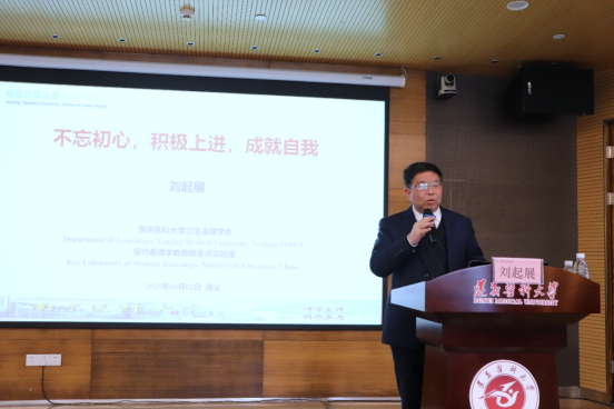 刘教授从自身六十载丰富的人生经历切入,围绕“不忘初心、积极上进、成就自我”为题展开分享。从丰富的主要人生经历、卓越业绩再到瞩目荣誉,刘教授结合自身的学术生涯和人生体悟,与我们分享了如何坚守初心、保持进取、在挑战中实现自我价值,并寄语青年学子坚定信念、顽强拼搏,在成长道路上不畏困难,把握时机,正确决断,为遵医发展和公共卫生事业贡献力量。