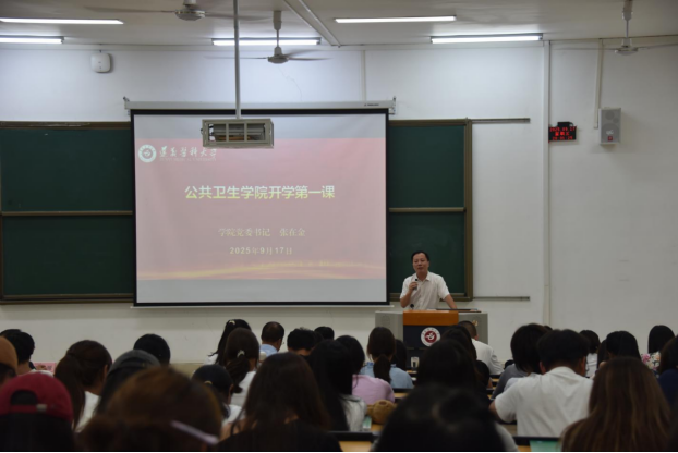 最后,学院党委书记张在金作了总结讲话并给同学们讲授开学第一课。张书记要求同学们要“三看”:即成长路上要有轻舟已过万重山的“回头看”、前路路漫漫亦灿烂的“向前看”和吾将上下而求索的“低头看”;同时希望大家要有家国情怀,始终保持“四心”,即要有责任之心、感恩之心、必胜之心和敬畏之心,并祝愿同学们在未来的学习和生活中能够学有所成、学有所获、不负韶华。