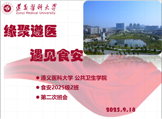 为强化班级集体责任感,增强班级凝聚力,9月18日晚7:00,在班主任罗意老师统筹,研究生班导柳斌、胡吉吉策划,本科班导闫文婷、陈宇浩主持食品质量与安全25-2班开展“缘聚遵医,遇见食安”主题班会,学院党委副书记兼25级辅导员王红卫参加班会。