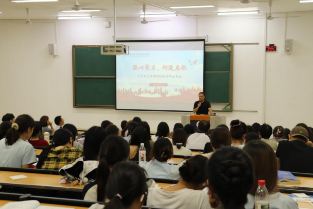 最后,学院党委副书记王红卫对会议进行总结。他讲到,学院始终坚持通过三全育人,五育并举的方式,助力青年大学生成长成才,落实好立德树人根本任务,考研分享、动员、助力考研送温暖等学院品牌活动,就是具体的举措,并详细列举了学院连续四年来逐年攀升的考研升学率。王书记还结合近年高校毕业生就业形势,鼓励同学们以积极心态、认真准备、从容面对,并祝愿大家一战成硕,同时也寄语2026届及后续考研同学坚定信念、全力以赴,为实现个人发展目标而努力奋斗。