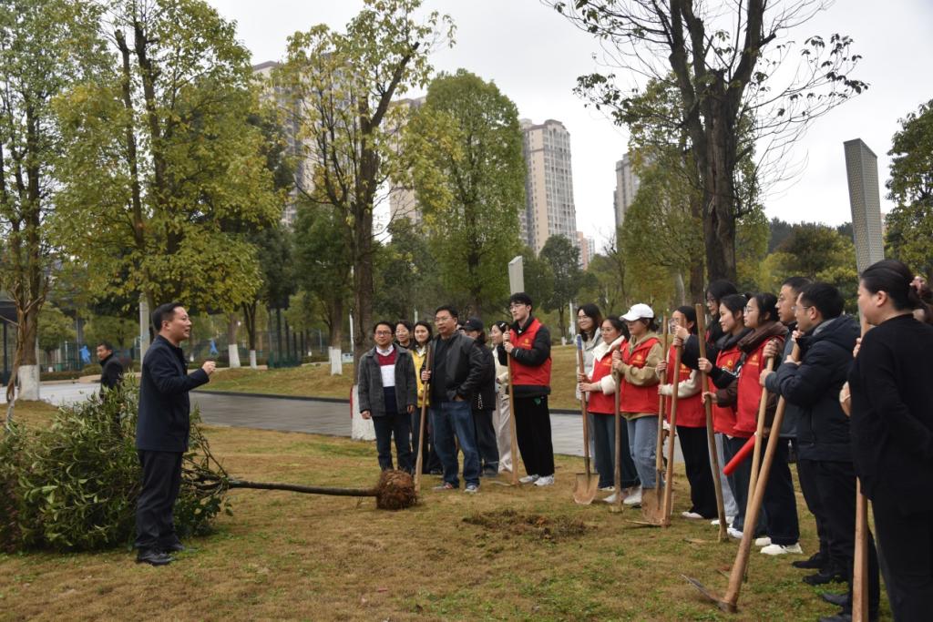 上午10时,天空下着蒙蒙细雨。活动开始前,张在金简要介绍了植树节的由来和重要意义。他指出,植树造林是建设生态文明的重要实践,是落实劳动育人的生动课堂,也是学院构建“331三全育人”人才培养体系的重要组成部分。