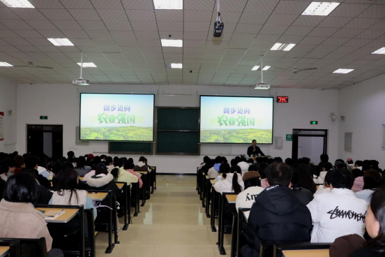 课程中,陈校长引导学生思考青年角色:“农科生可深耕技术,其他专业也能通过跨学科思维助力农业现代化。”现场学生结合专业讨论热烈,有预防专业同学提出“可探索农业与公共卫生的交叉服务”,获陈校长肯定。