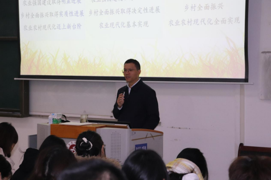 陈校长从农业强国的核心内涵切入,结合我国农业现代化进程中的科技赋能、粮食安全保障等实例,解析“农业强”对国家发展的战略意义。他讲到,当前我国在种业创新、智慧农业等领域的突破,正推动农业从“数量保障”向“质量效益”转型;同时也指出,农业强国建设需破解资源约束、人才短缺等现实问题。