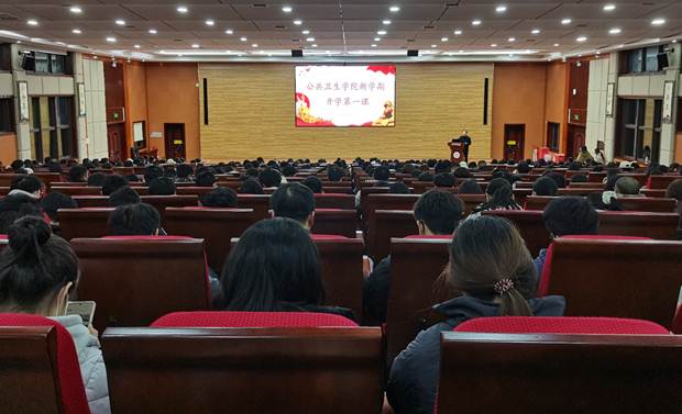 会上,学院党委书记张在金首先简要回顾了2022年学院党的建设、教学、科研、学科建设、学生管理等工作并取得的成绩,重点提到了学院考研录取率连续两年居全校第二位、大学生创新创业项目新突破、首次获得国家级暑期“三下乡”社会实践团队、团支部书记讲团课比赛省级三等奖等,特别是对去年下半年因为新冠疫情封控期间,同学们严格服从学校安排,充分理解、配合并积极参与疫情防控工作给予了充分肯定,展现了公卫学子的良好风采。随后,张书记还结合2023年betway西汉姆联平台10项重点工作作了解读,重点就学院学生管理工作提出明确期望和要求,要求狠抓内涵建设和制度建设,严抓学风、端正考风,杜绝出现考试作弊的情况。最后,他向同学们提出了殷切希望,新的学期、新的开始、新的希望,希望同学们保持良好的精神状态,制定好学期目标,撸起袖子加油干,持之以恒实现学期和学业规划目标。