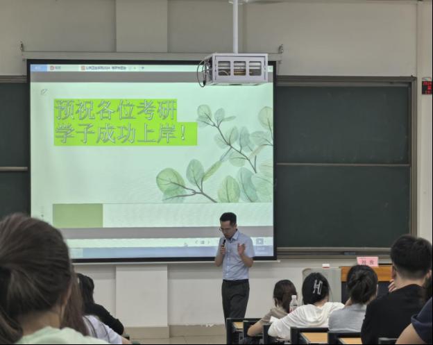 会上,学院副院长(主持工作)周远忠就当前的就业趋势进行了深入分析,强调了继续深造的重要性,并激励在座的每一位同学树立信心,坚持信念,积极投身于实现个人理想的奋斗之中。学院党委副书记王红卫根据学院学科优势、专业特色以及人才培养目标,向正在备战考研的同学们提出了具体的指导建议。2024届研究生廖兴建、罗磊同学围绕考研复习方法、时间管理和心理调适等多个方面,分享了各自的考研经验。刘俊副院长对专业硕士与学术硕士的区别进行了详细解读。张孝刚博士对21级食品质量与安全专业的考研同学做了特别鼓励,提醒他们要做好规划,明确目标。
