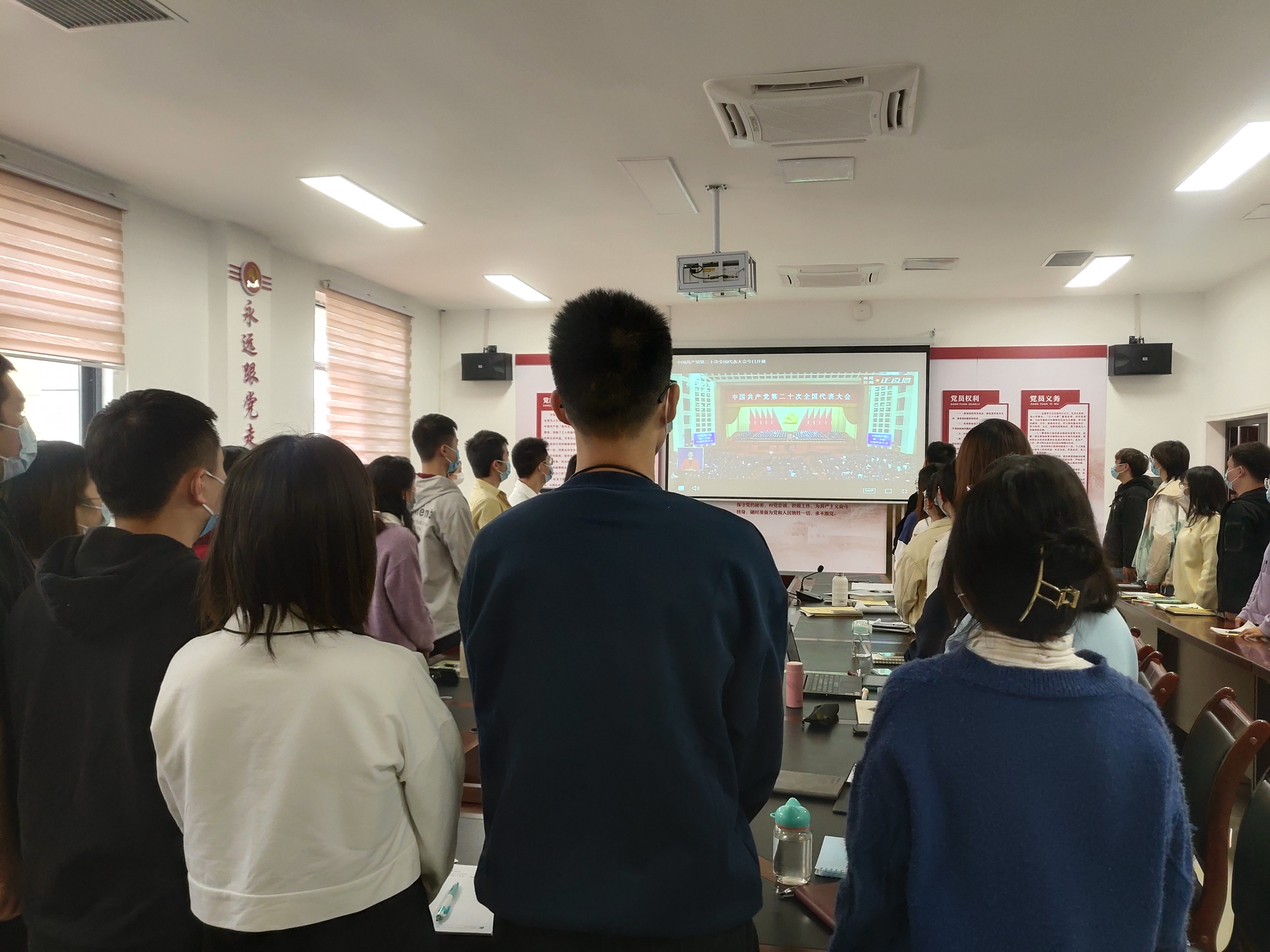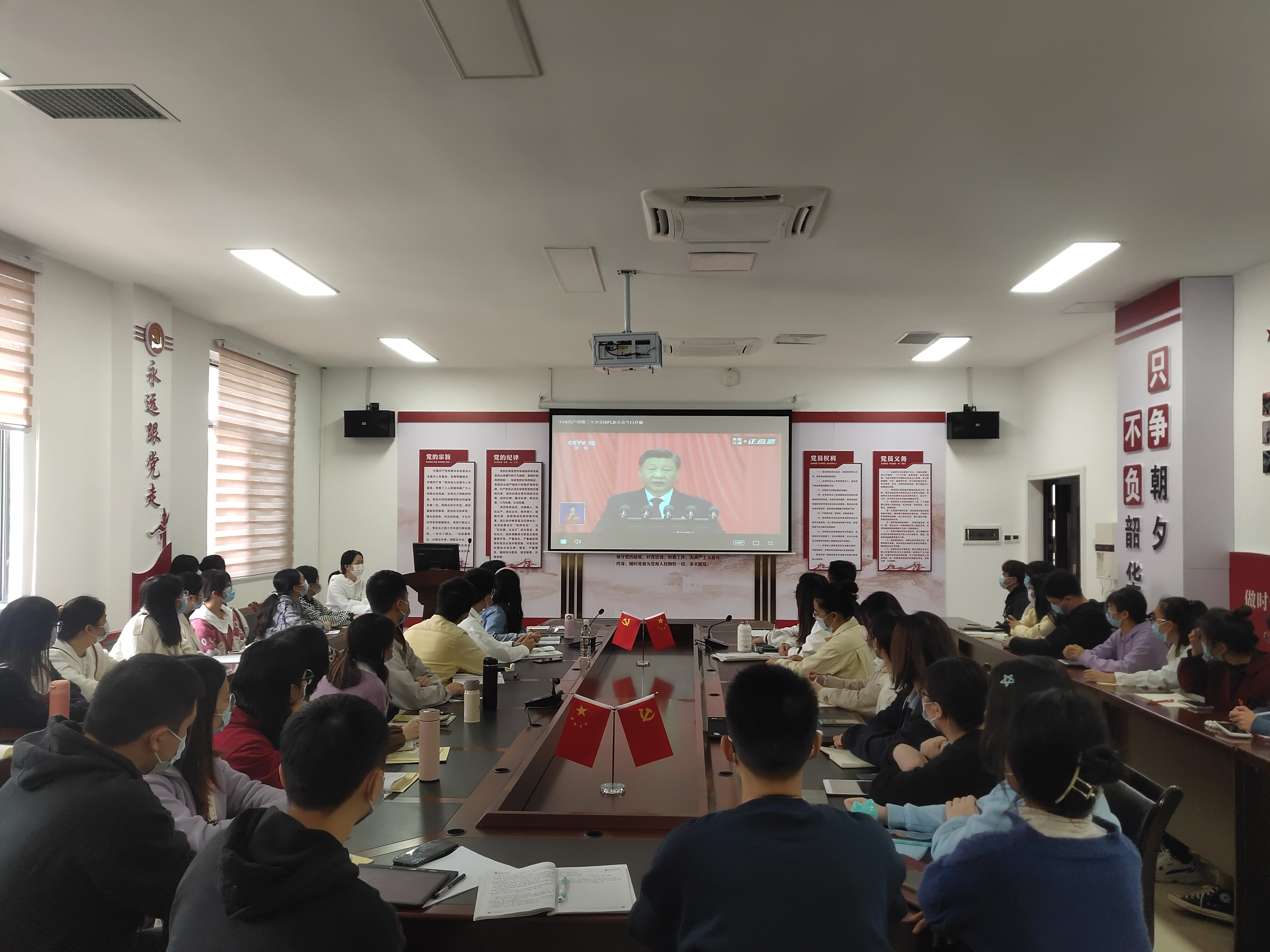 中国共产党第二十次全国代表大会,是在全党全国各族人民迈上全面建设社会主义现代化国家新征程、向第二个百年奋斗目标进军的关键时刻召开的一次十分重要的大会。开幕伊始,支部党员齐唱国歌,并怀着崇敬的心情,为毛泽东、周恩来、刘少奇、朱德、邓小平、陈云等已故老一辈无产阶级革命家和革命先烈默哀。随后,全体党员认真观看,聆听习近平总书记代表第十九届中央委员会向党的二十大代表所作的报告。