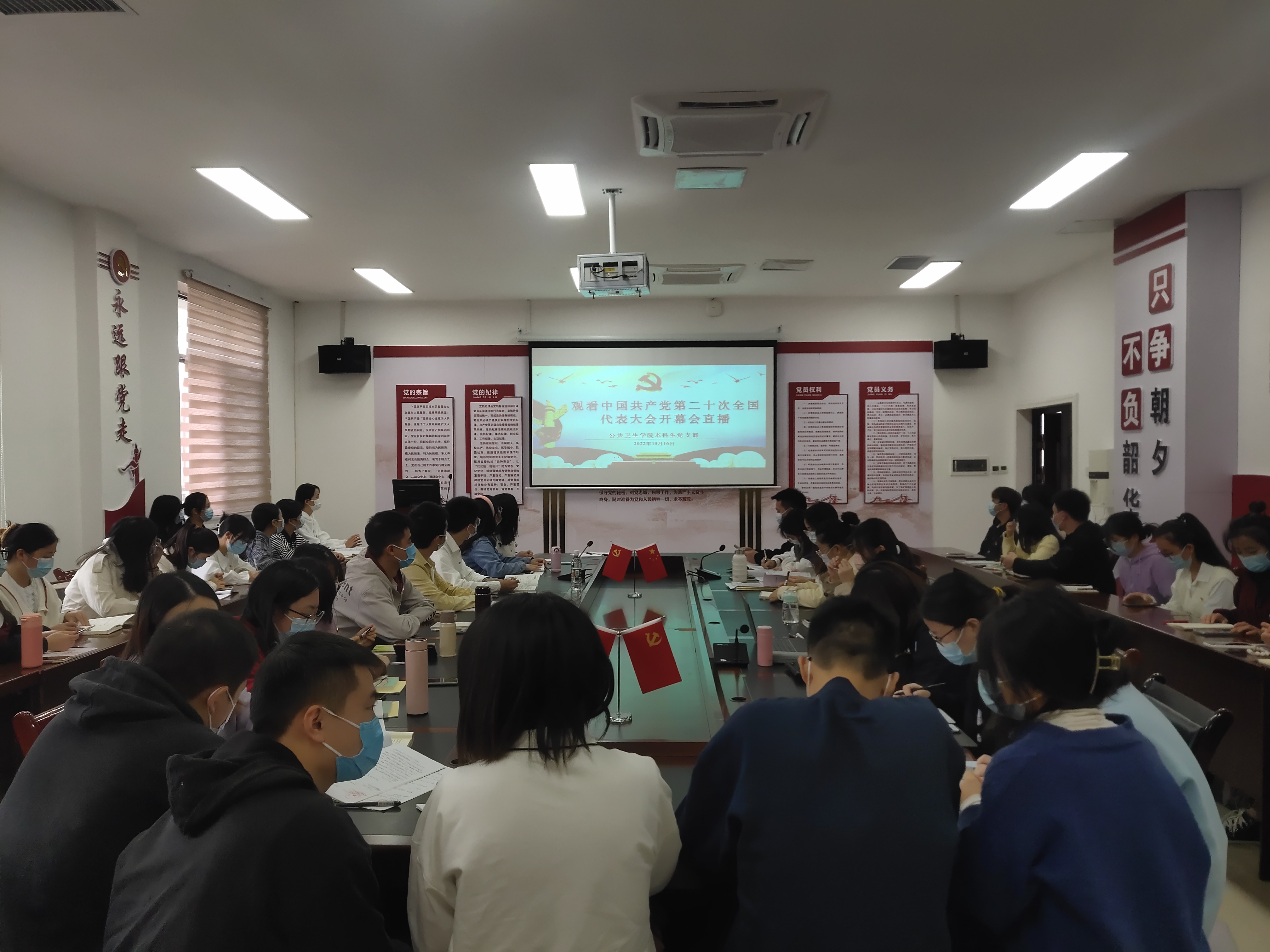 2022年10月16日上午10:00,中国共产党第二十次全国代表大会在北京人民大会堂开幕,betway西汉姆联平台本科生党支部全体党员在学院党员活动室集中收看党的二十大开幕盛况。