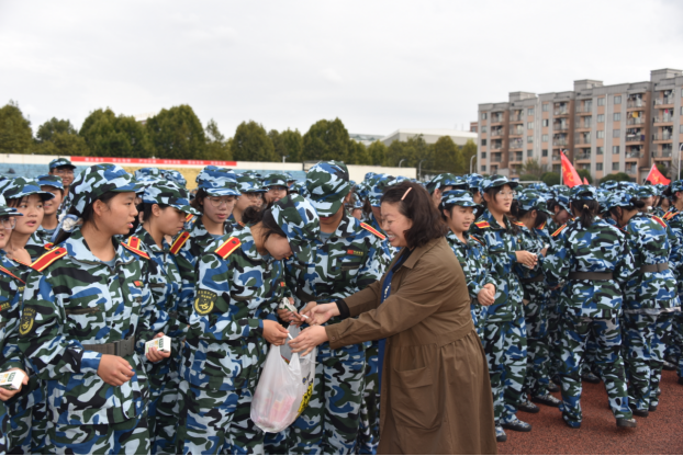 随后,老师们与军训学子进行了沟通交流,了解训练情况、身体状况,并为同学们分发了零食和饮料。