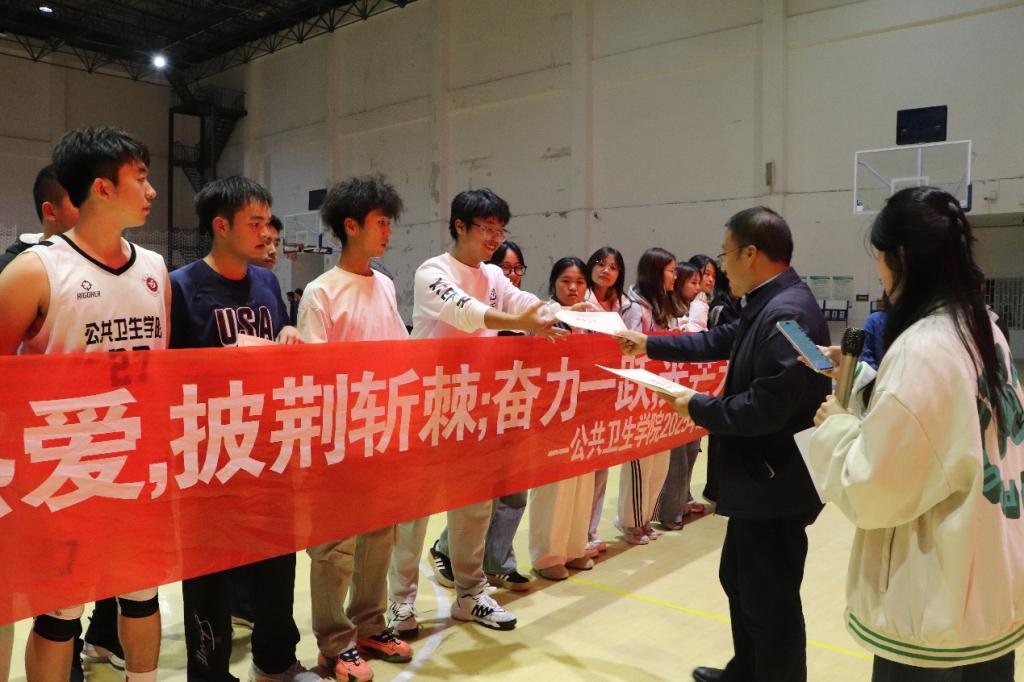 今年迎新杯篮球赛历时近10天,最终25预防1班夺得男子组冠军,25预防2班夺得女子组冠军。闭幕式表演赛由25级男子联队对阵学院男子篮球队,两队的高水平发挥为观众献上了一场精彩的对决。张芸芸、李孝先、严彪、罗世纪凭借出色的个人能力与无限的潜力,荣获“最佳新人”;杜闽南、王麒麟则凭借精准的投射技术,双双斩获“三分王”的殊荣。团体奖项方面:男子组冠军25级预防1班,亚军25级食安1、2班,25级预防2班、25级食安专升本分获第三、四名;女子组比赛中:25级预防2班摘得桂冠,25级食安专升本班、25级预防1班分别获得亚军和季军。学院党委副书记王红卫为获奖团体进行颁奖,并对本次篮球赛的顺利举办及同学们展现出的体育精神给予了高度评价。