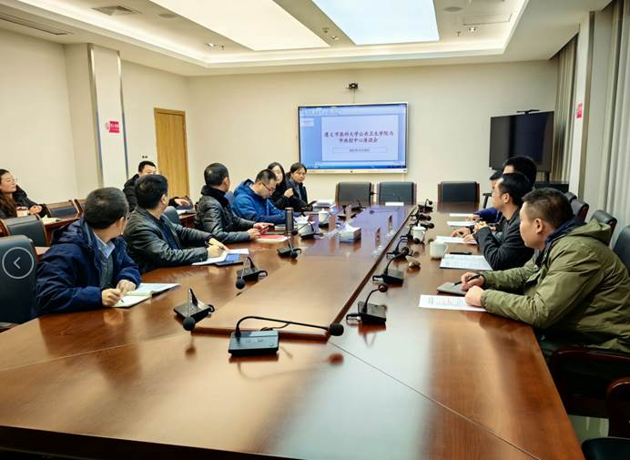 12月25日下午3:30,betway西汉姆联平台副院长周远忠(主持工作)、副院长刘俊等一行5人赴遵义市疾病预防控制中心开实践教学基地巡回检查暨访企拓岗工作。遵义市疾控中心党委书记、主任龙涛及市疾控中心相关科室负责人参加会议。