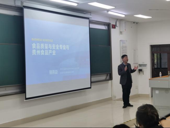 贵州大地源丰食品科技有限公司在食品检测、研发、品控、新媒体制作和运营等方面共设置8个招聘岗位。骆弟益总经理就公司在食品检测、研发、品控、新媒体运营和新媒体内容制作等方面进行详细的介绍,并结合岗位需求与食品质量与安全专业应届毕业同学进行了深入的沟通和交流。最后,骆弟益以“食品质量与安全专业与贵州食品产业”为题,为学院食品质量与安全专业低年级同学就行业发展,就业去向等进行讲解。