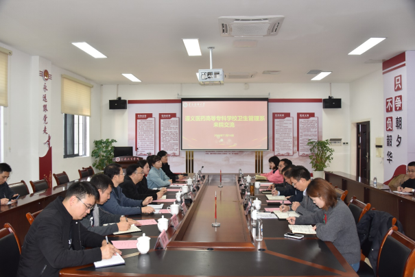 11月14日上午9:00,遵义医药高等专科学校卫生管理系来院交流。学院党委书记张在金、副院长刘俊、教务科科长王峰、食品质量与安全专业负责人张孝刚,遵义医药高等专科学校卫生管理系党总支书记郑传清、主任卢远兴、副主任陶婷婷、教学科研办主任蒋纬、学生科科长刘彦君、食药监教研室主任何鸿、教务科工作人员、本科班专职实验员周鹏,以及两校食品相关教研室教师代表参加了会议。会议由刘俊主持。